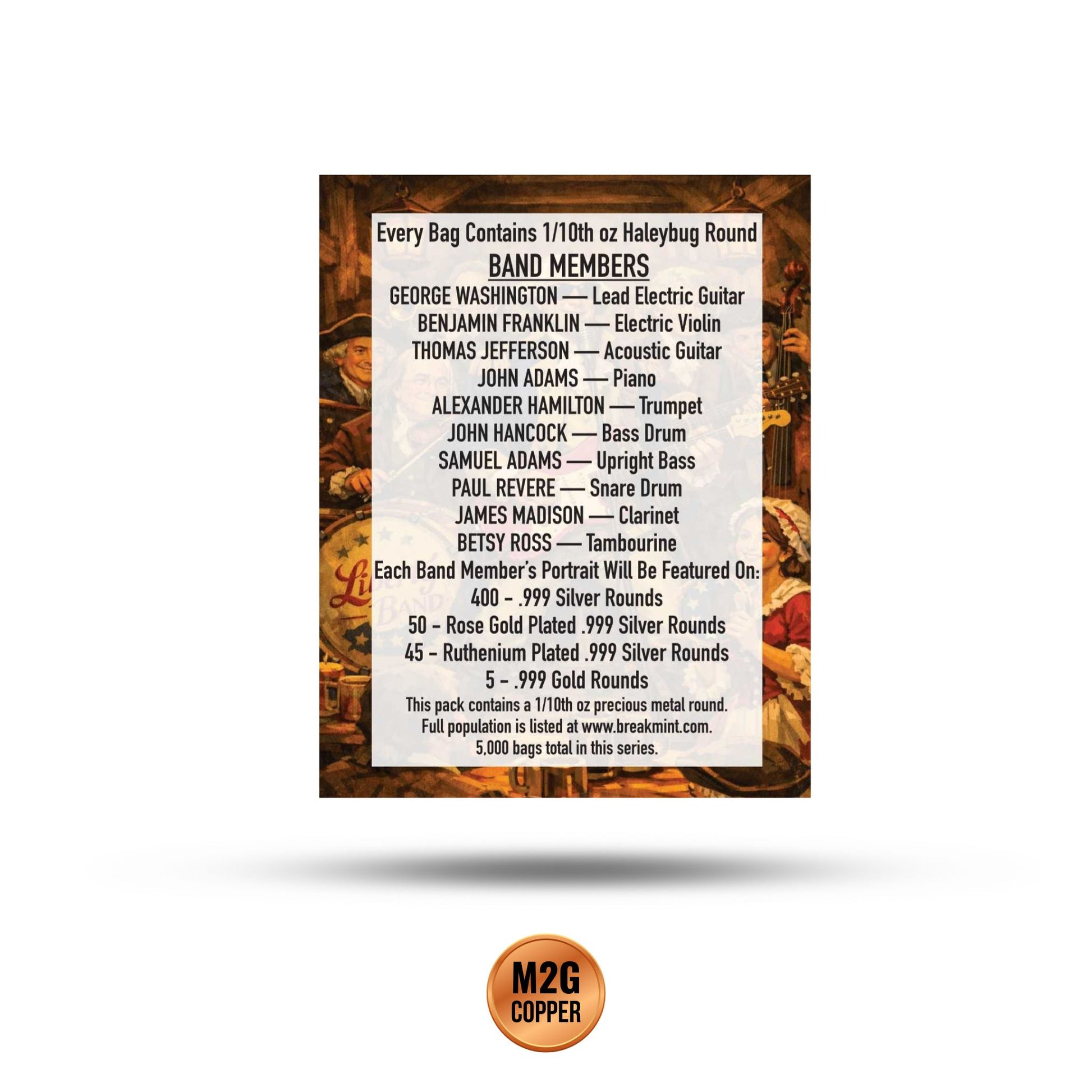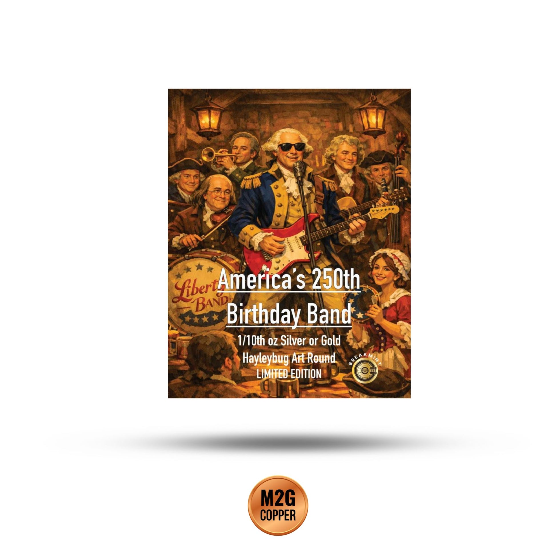 Commemorate America's Sestercentennial with the 2026 Breakmint America's 250th Birthday Band Mystery Pack. This unique collectible series offers a "mystery" experience where each pack contains a 1/10 oz precious metal band.